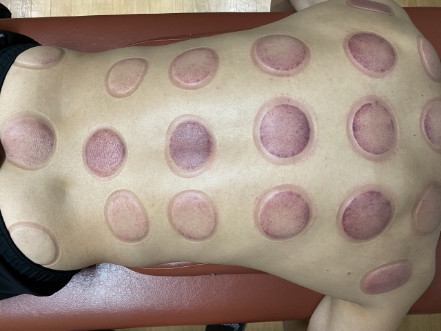 また、カッピングはカップをはずした後に、溢血斑(いっけつはん)と呼ばれる跡が出ることがあります。